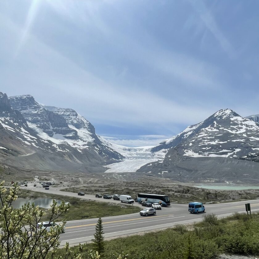 世界屈指の景観ルート「アイスフィールドパークウェイ」を走りながら、氷河、山岳風景、氷河湖などロッキーらしい景色を巡ります。