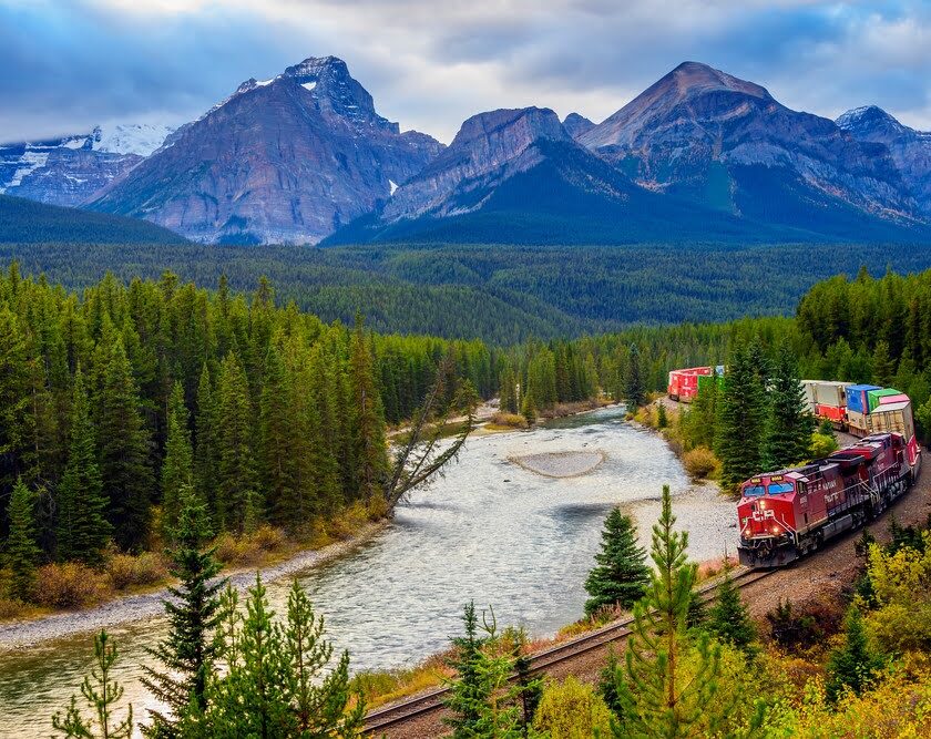 ロッキーの山並みを背景に、線路が美しいカーブを描く超人気フォトスポット。列車が通過するタイミングに当たれば、旅のハイライト級の“作品写真”が狙えます。撮れなくても景色だけで十分絵になる場所です。